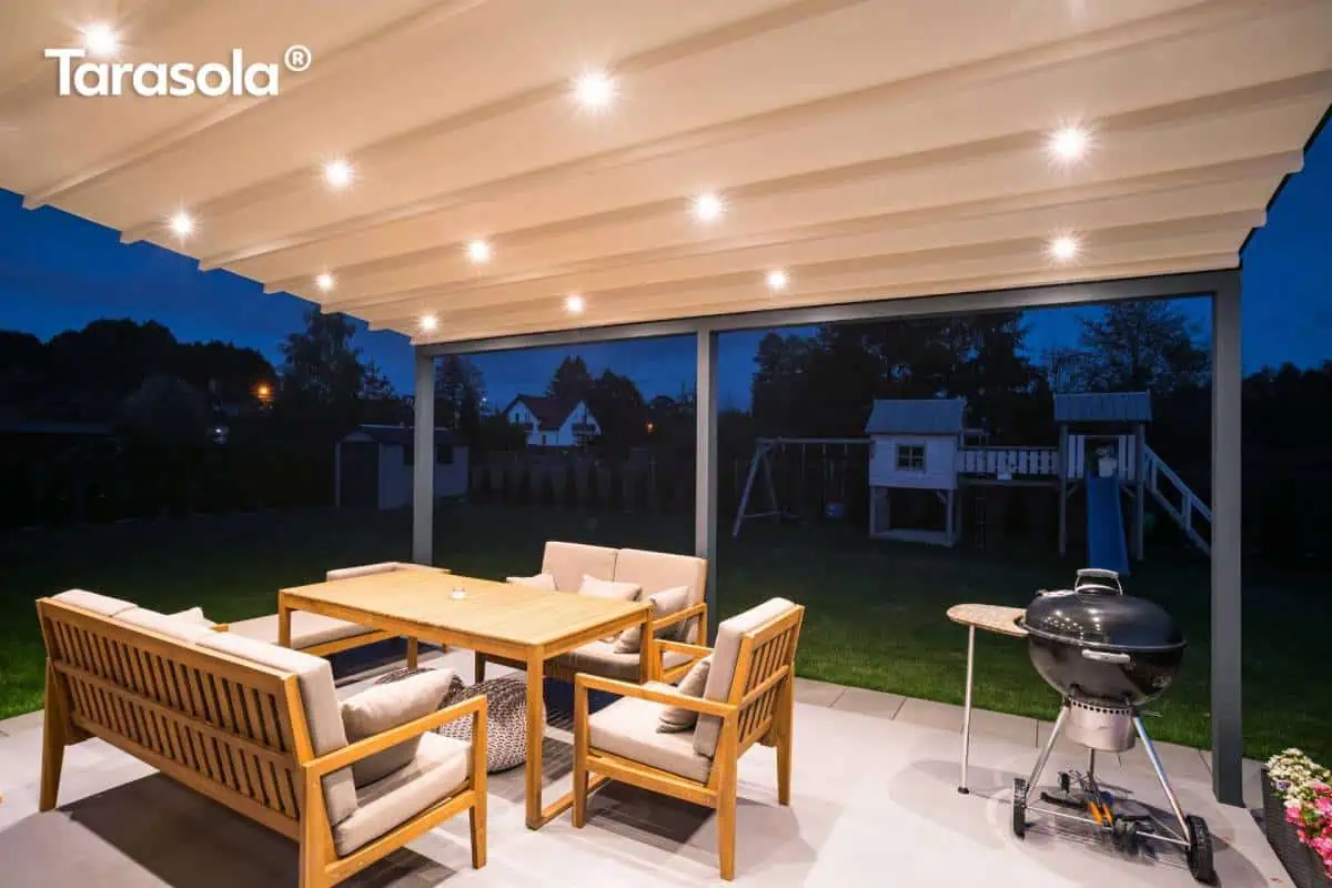 Oświetlenie i ogrzewanie w pergoli to świetny sposób aby jeszcze przyjemniej spędzać czas w gronie bliskich, nawet w chłodniejsze wieczoru.