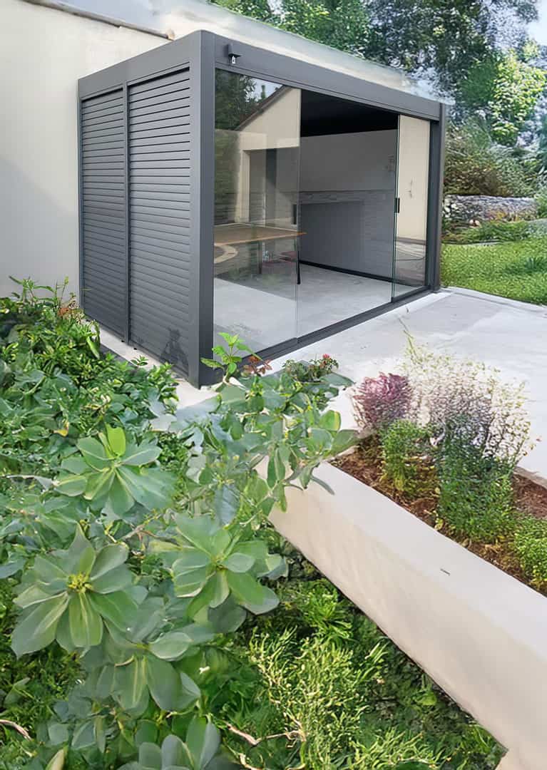 Przesuwane szklane panele do pergoli Marlo i Rubio to eleganckie rozwiązanie, które pozwala w prosty sposób przekształcić pergolę w komfortowy ogród zimowy, dostępny przez cały rok. System został zaprojektowany specjalnie z myślą o tych modelach pergoli, dzięki czemu idealnie wpisuje się w ich nowoczesną bryłę i tworzy spójną, estetyczną całość.