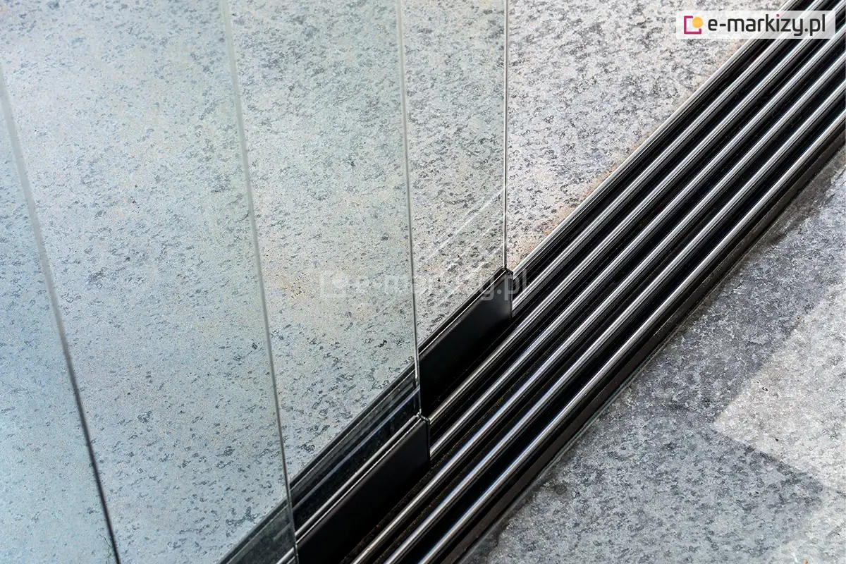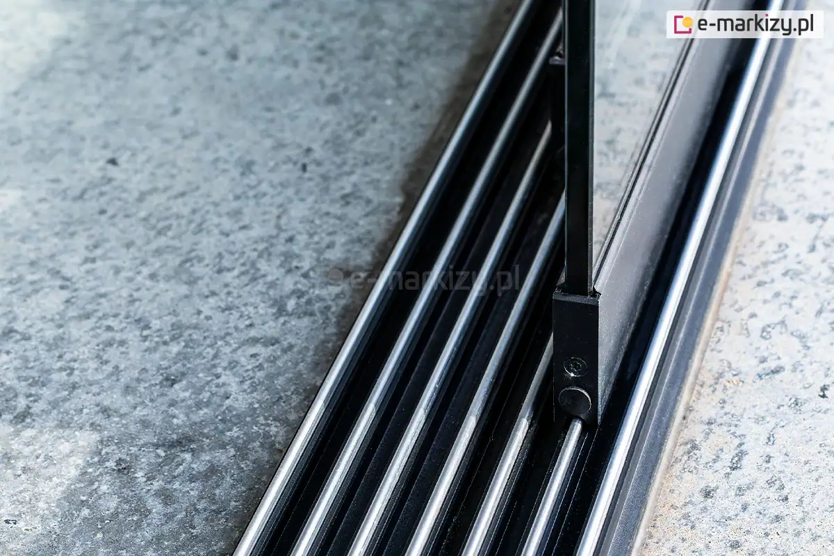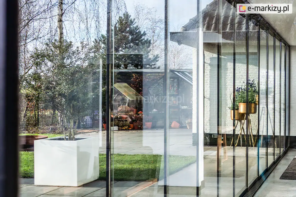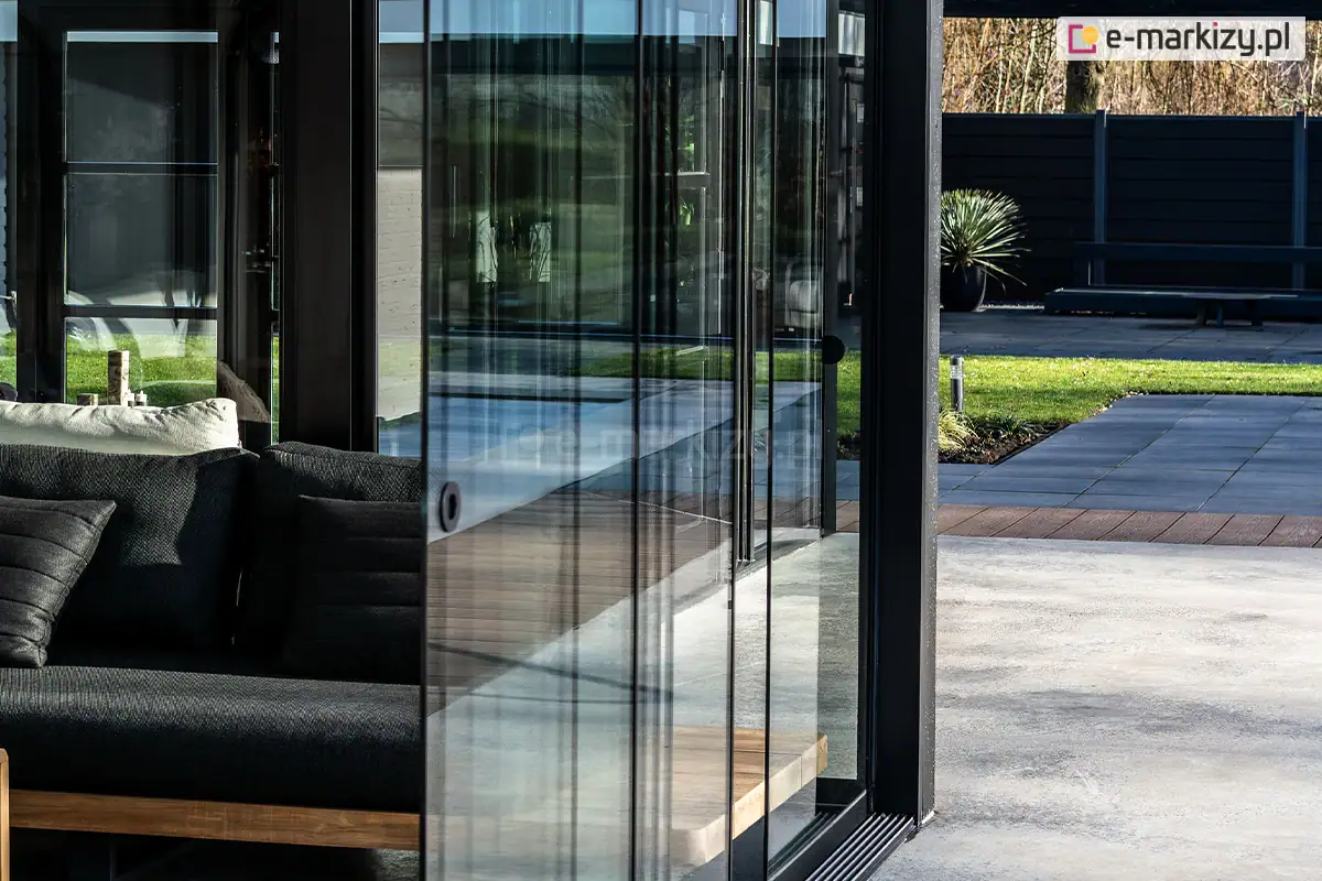 Konstrukcja aluminiowa zapewnia długotrwałość i stabilność całej instalacji. Użytkowanie szklanych ścian przesuwnych jest niezwykle wygodne dzięki zastosowaniu nowoczesnych rozwiązań technicznych. Prowadnice zapewniają płynne i ciche przesuwanie paneli, co podnosi komfort użytkowania.