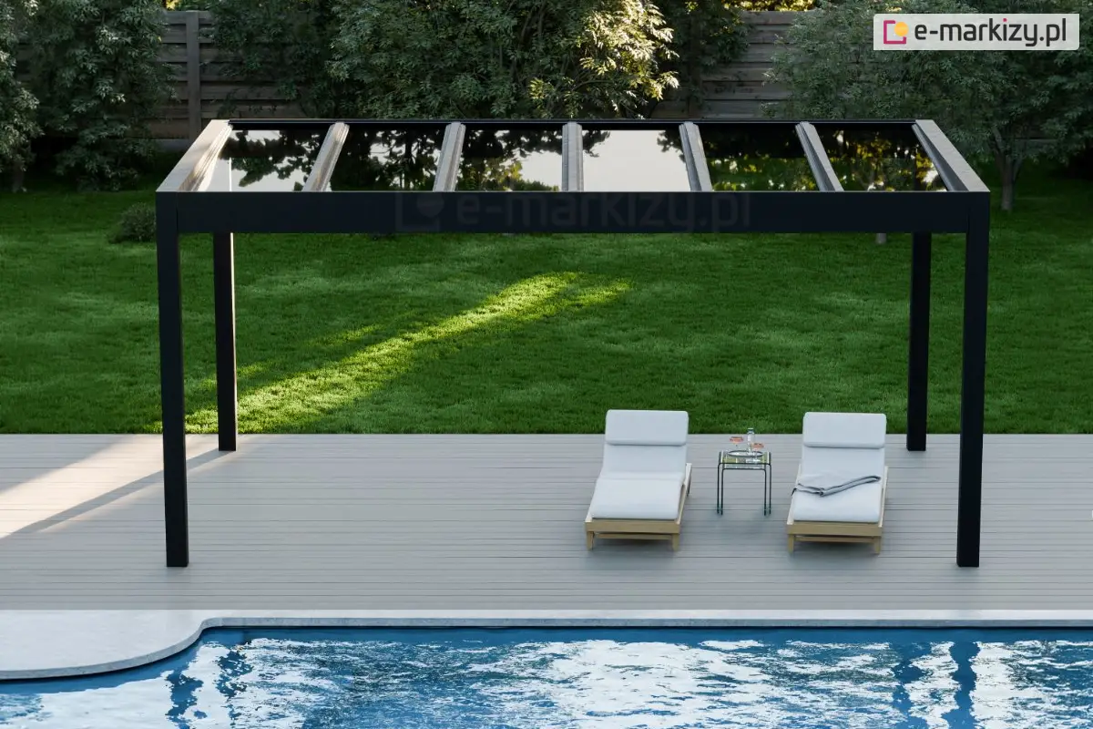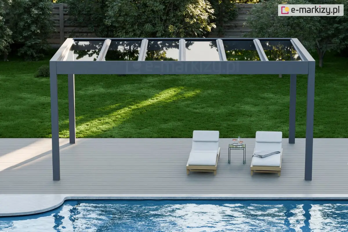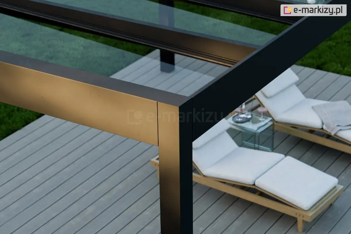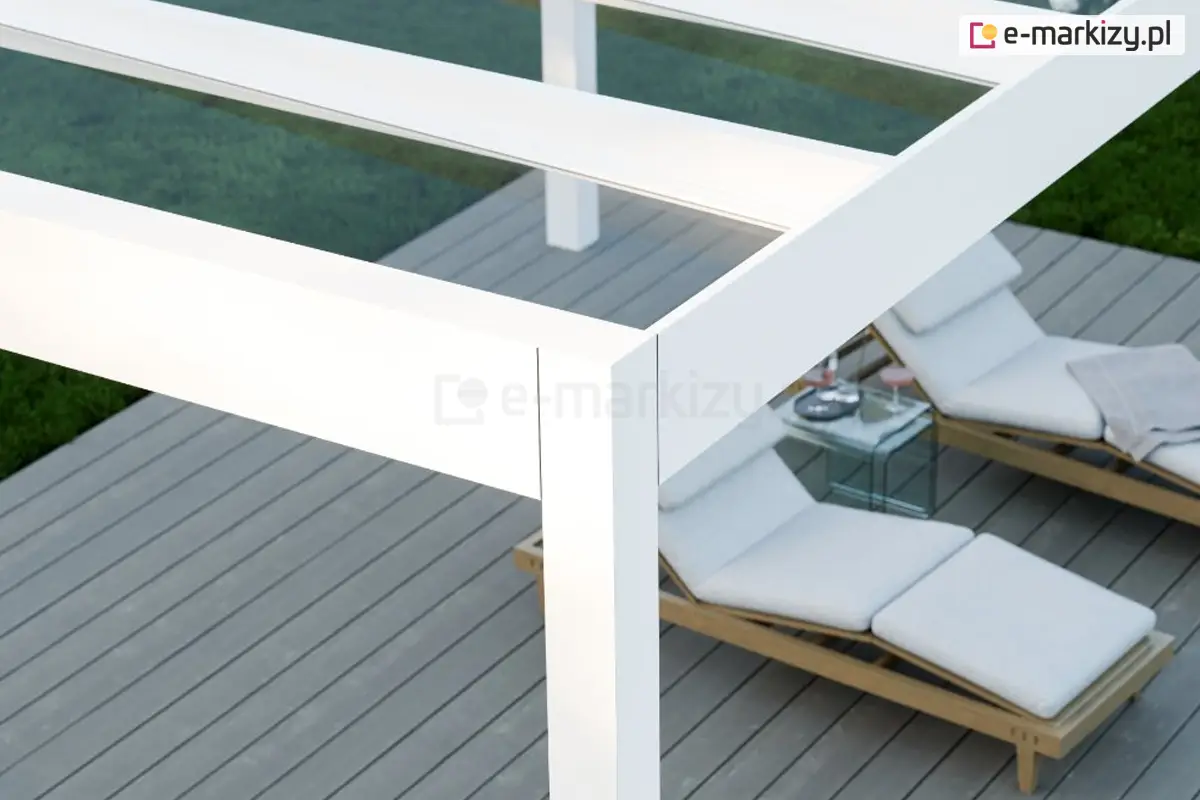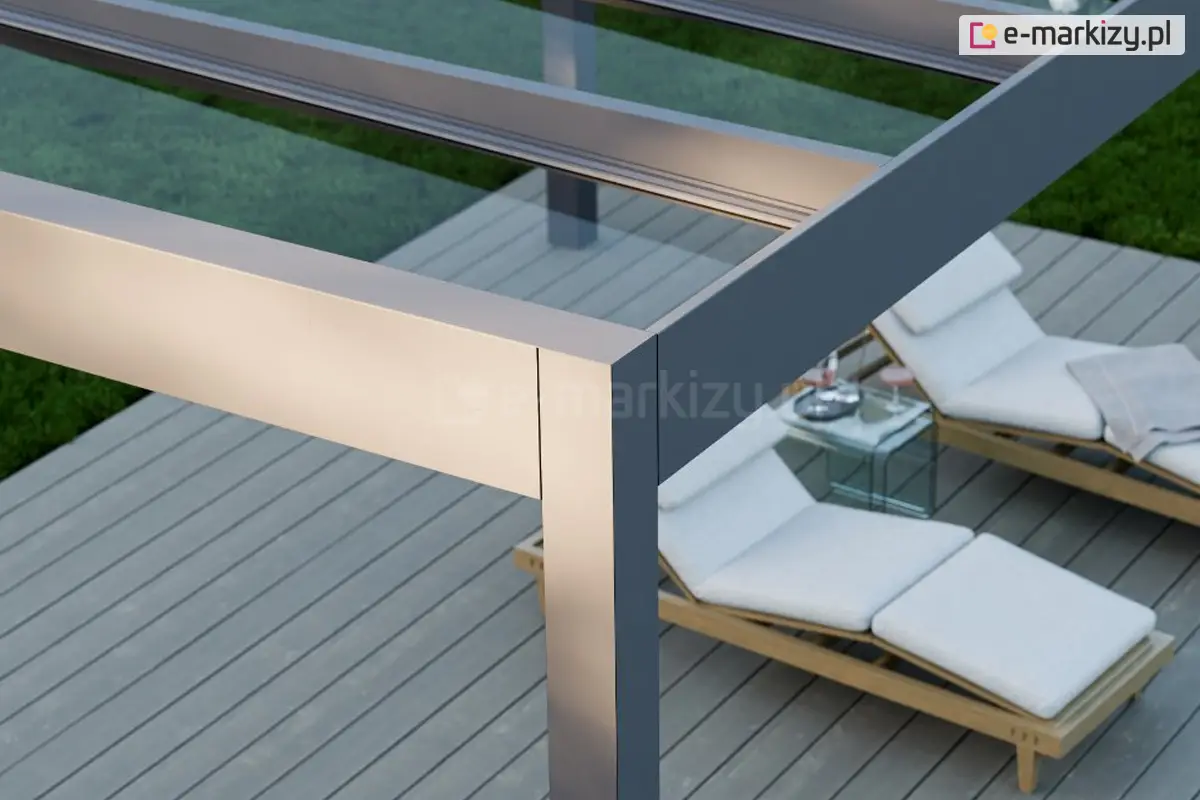 Spekta Glass to rozwiązanie, które imponuje swoją innowacyjną konstrukcją. Rozpiętość 7 metrów na zaledwie 4 słupach pozwala cieszyć się dużą, otwartą przestrzenią bez zbędnych przeszkód, doskonale sprawdzi się w ogrodach lub na otwartych tarasach. To idealny wybór dla tych, którzy pragną połączyć estetykę z praktycznością i wykorzystać zadaszenie jako otwarty garaż. System przystosowany jest do łączenia modułowego ze sobą wielu konstrukcji w celu osłonięcia dużej przestrzeni.